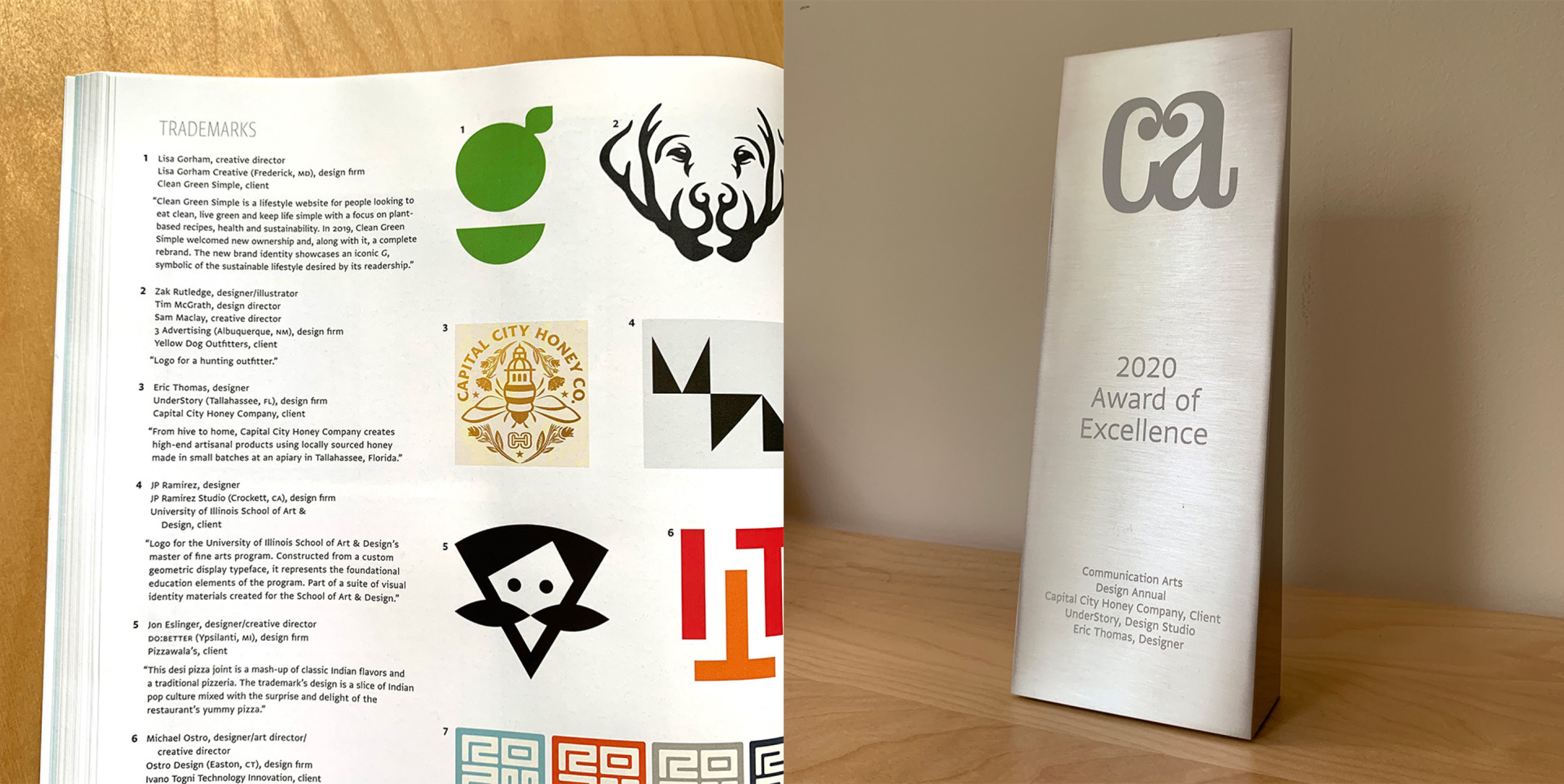 Urban apiarist and founder Cameron Ulrich came to UnderStory looking for help with a brand identity design for her new company. Capital City Honey Company creates high-end artisanal products using locally sourced honey made in small batches at an apiary in Tallahassee, Florida. We discussed her brand vision for an identity that leans both luxury and craft, and focused on packaging designs that both fit in and stand out as unique and eye-catching.