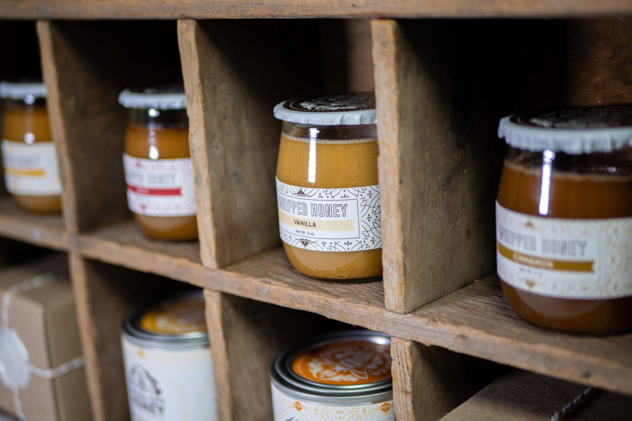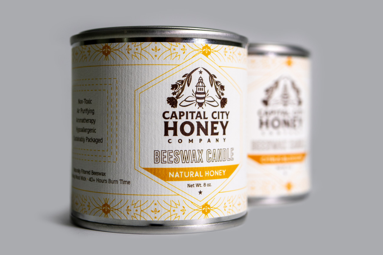 After we solidified the logo marks, we moved on to a cohesive packaging design system. The initial products were Raw Honey, Beeswax Candles, and Whipped Honey. We wanted to make sure we established a system for flavors and scents as future products are rolled out. Jar lids include the distinct logo mark consistent on all products.