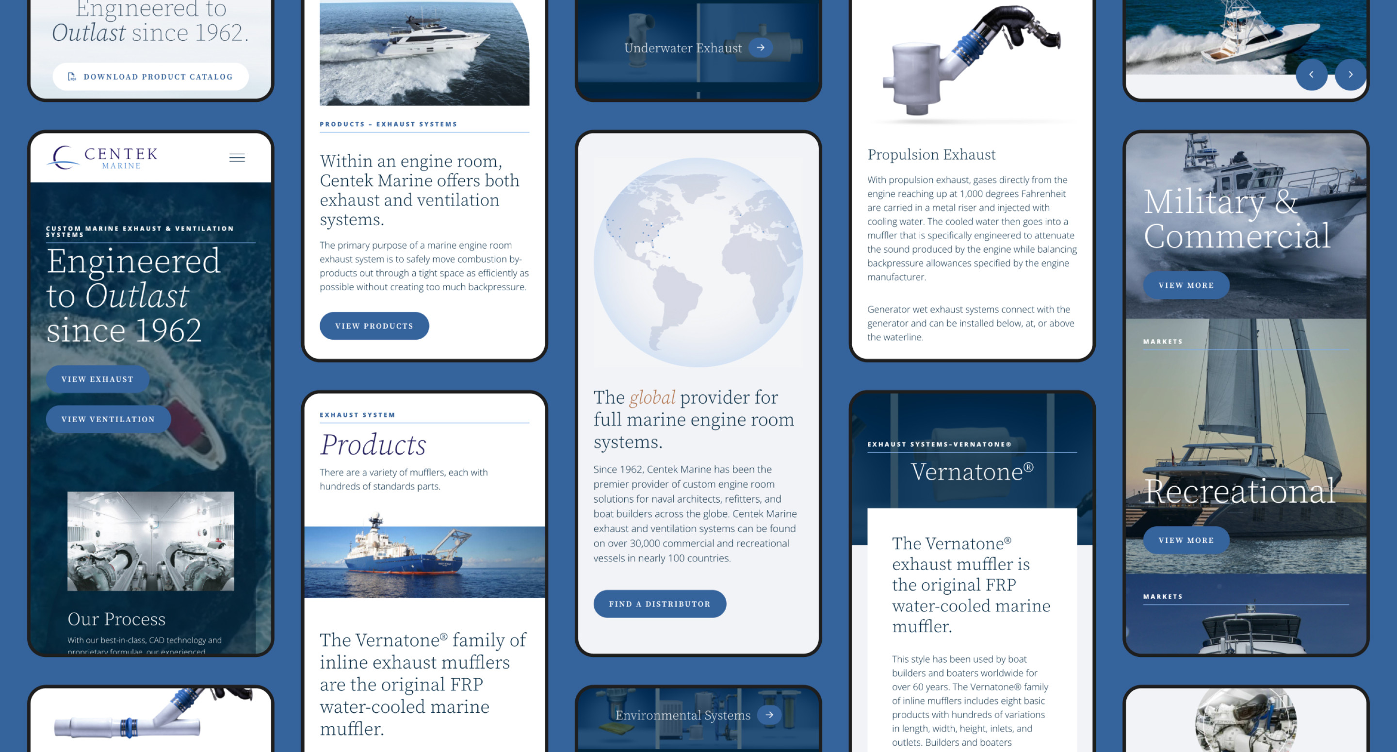 Fresh off a brand refresh and new vision for the future, Centek Marine's leadership was seeking a fresh and modern take on their brand look, starting with their website. UnderStory met with the client to discuss their vision and thoughts about a new design direction including how we could completely restructure the way the company talks about and shares its products.