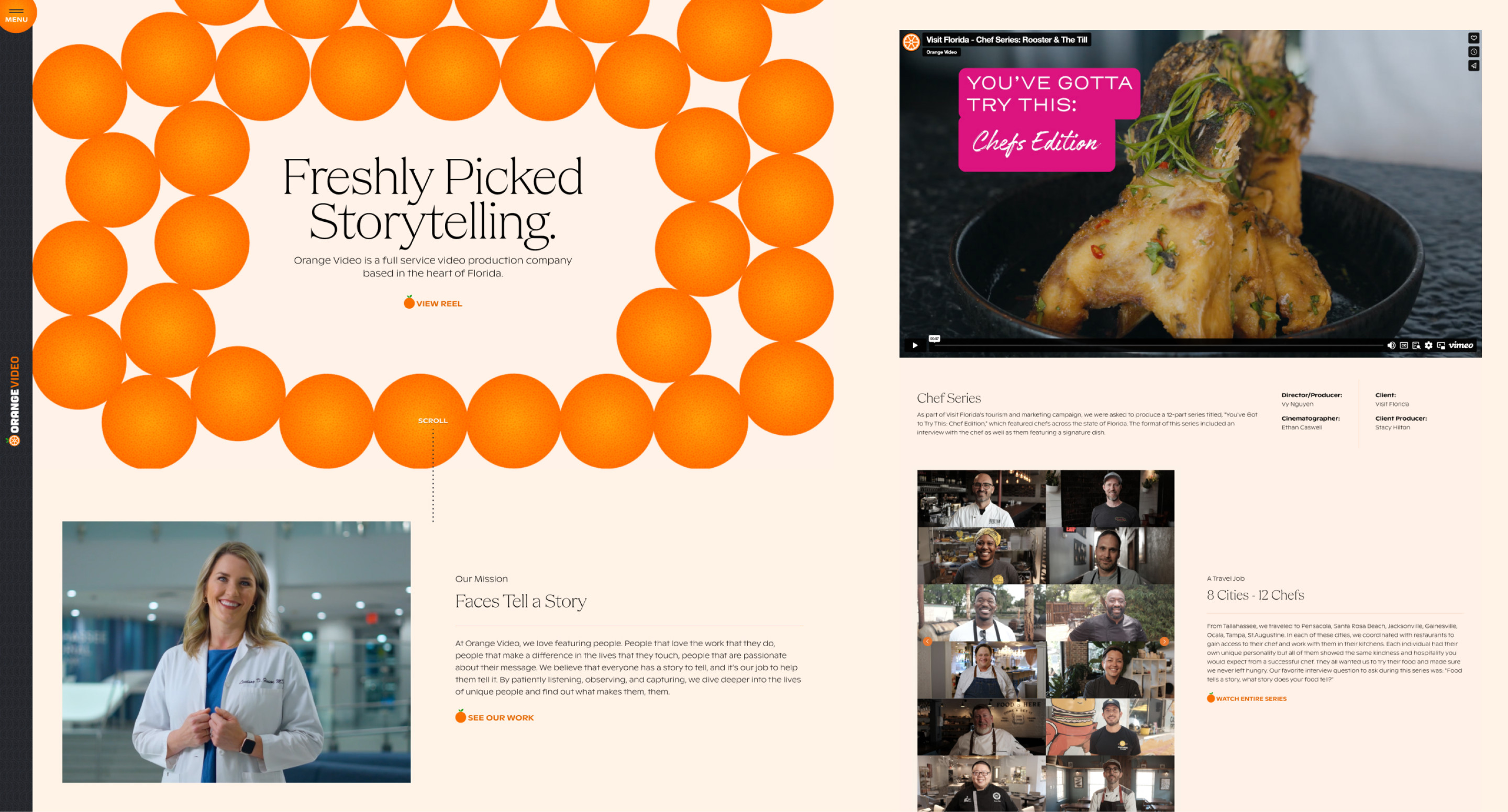 Anchored by a new brand headline of "Freshly Picked Storytelling", The site highlights their diverse outstanding portfolio, including commercials, corporate videos, and storytelling projects. Integrated video previews and sleek transitions create an immersive experience, further emphasizing the company’s commitment to creativity and high-quality content.