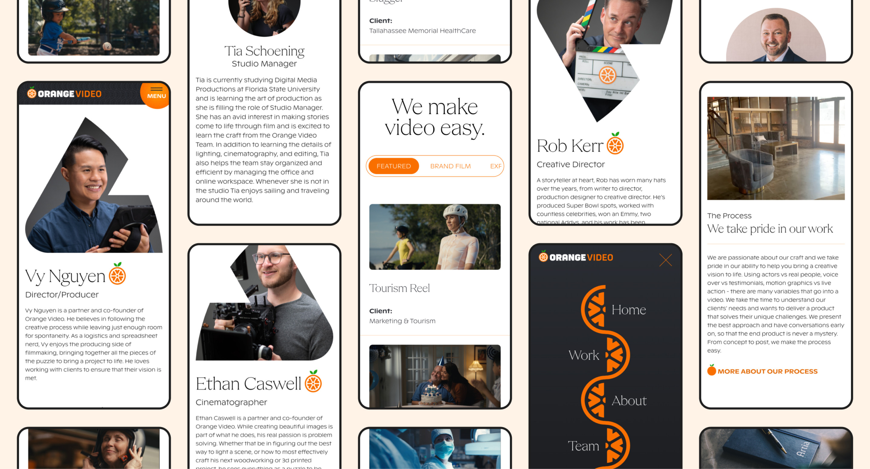 As a full service video production company based in the heart of Florida, Vy Nguyen and Ethan Caswell approached UnderStory for help with a new brand identity design. We worked with the client on their vision for their new company to help solidify the direction into an "all in" effort for the namesake color orange.