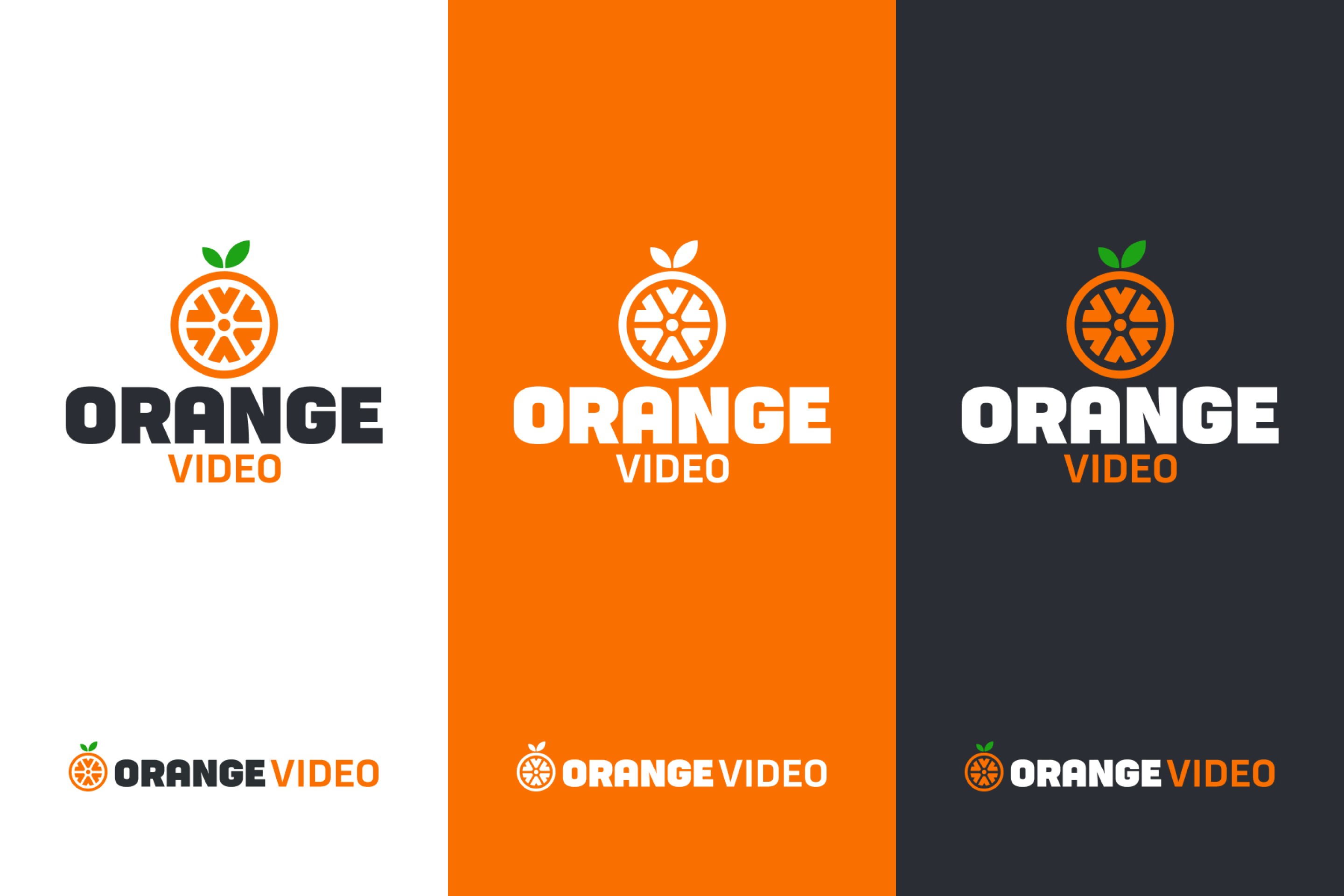 Our solution for the main logo mark is a play on the shape of a sliced orange fruit combined with a visual of the classic video reel.