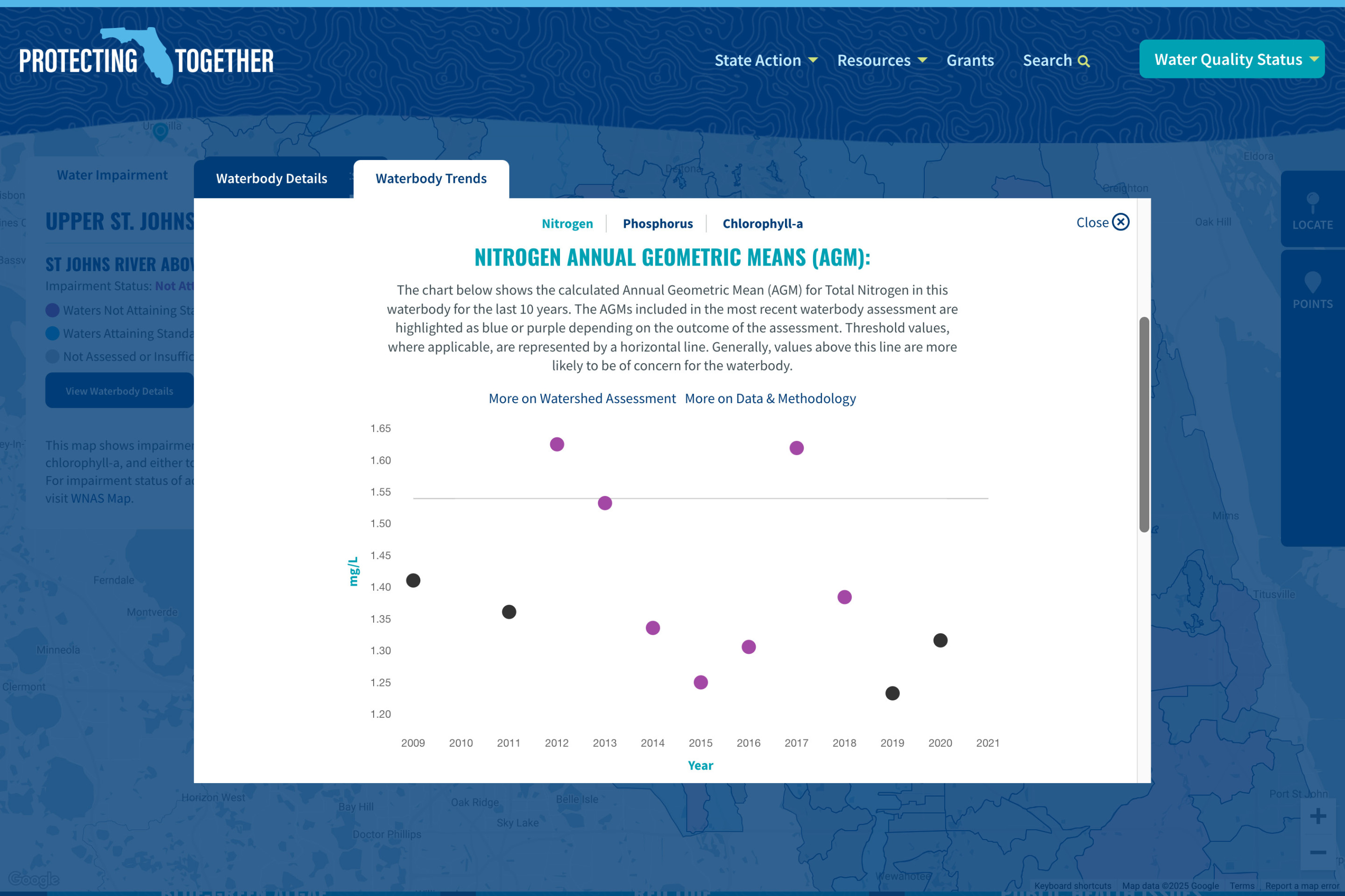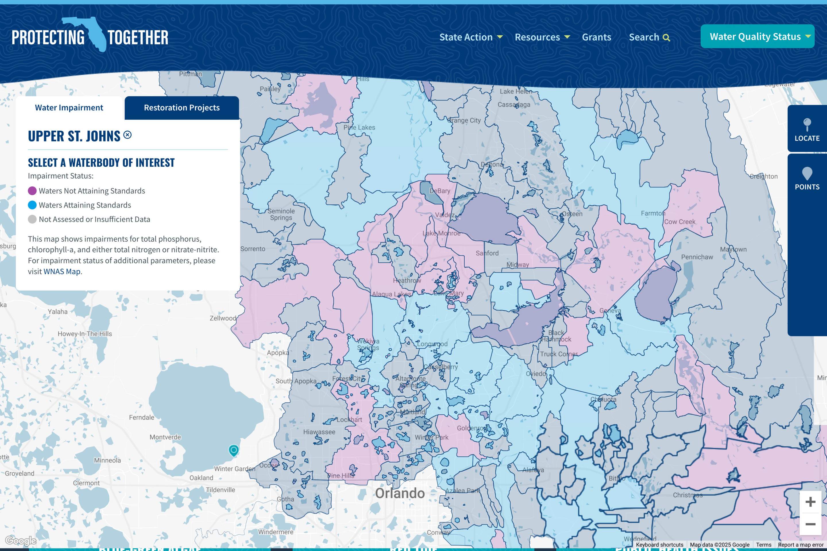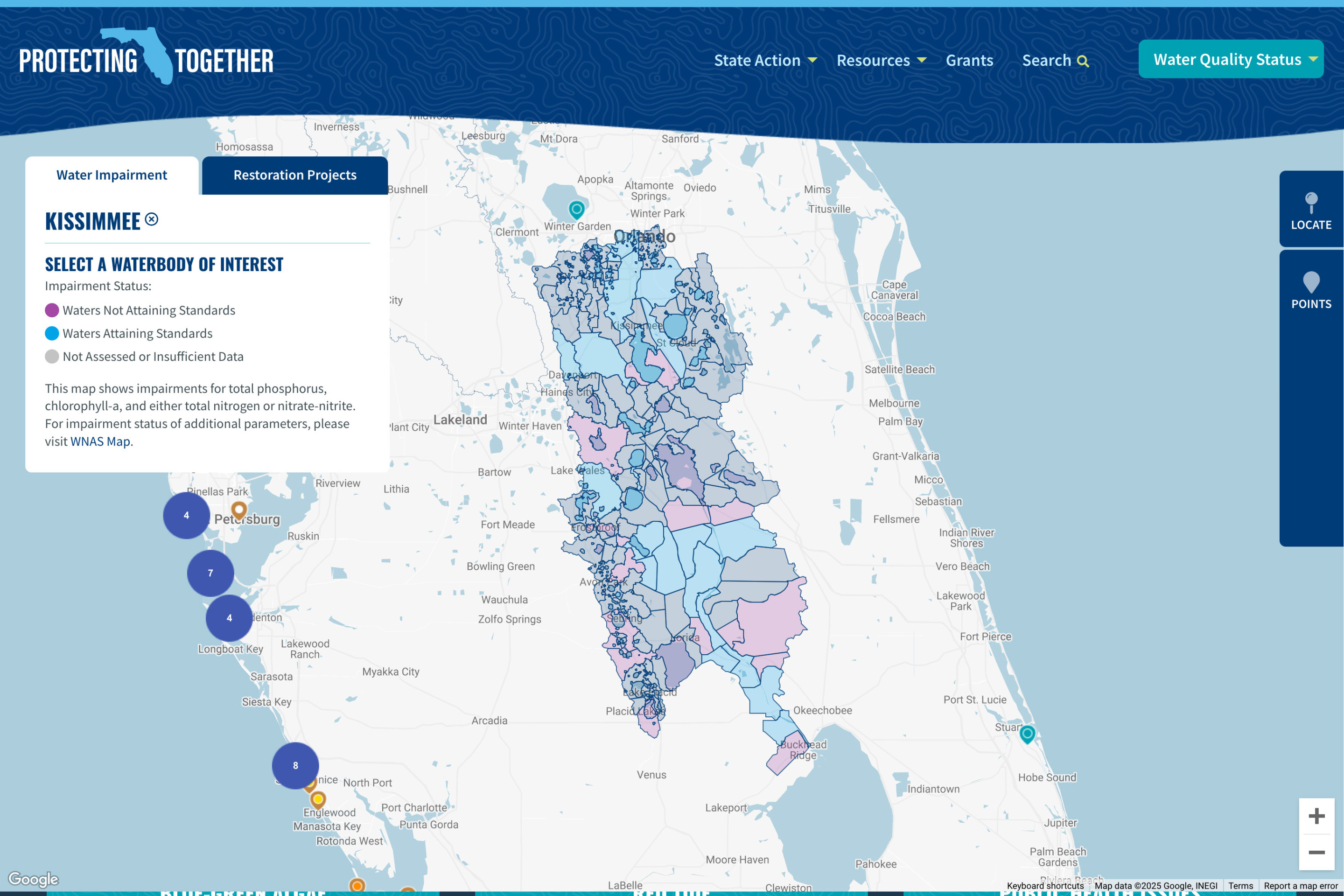 The website features active grants applications, news timeline updates, a robust education center, and more. The centerpiece is the award-winning Water Quality Data Map- a statewide interactive map leveraging Google Maps technology and fueled by dynamic live water quality data from across the state of Florida.