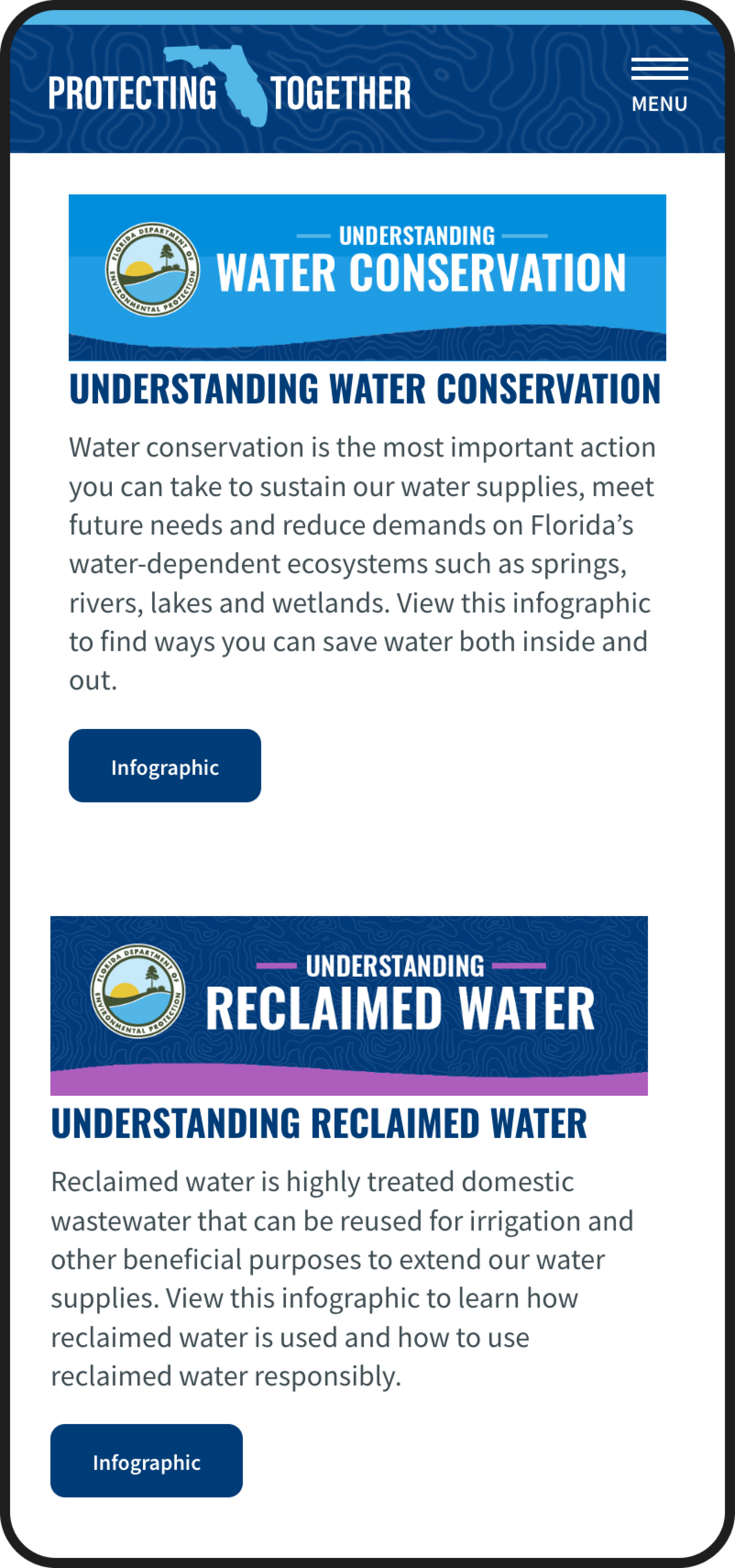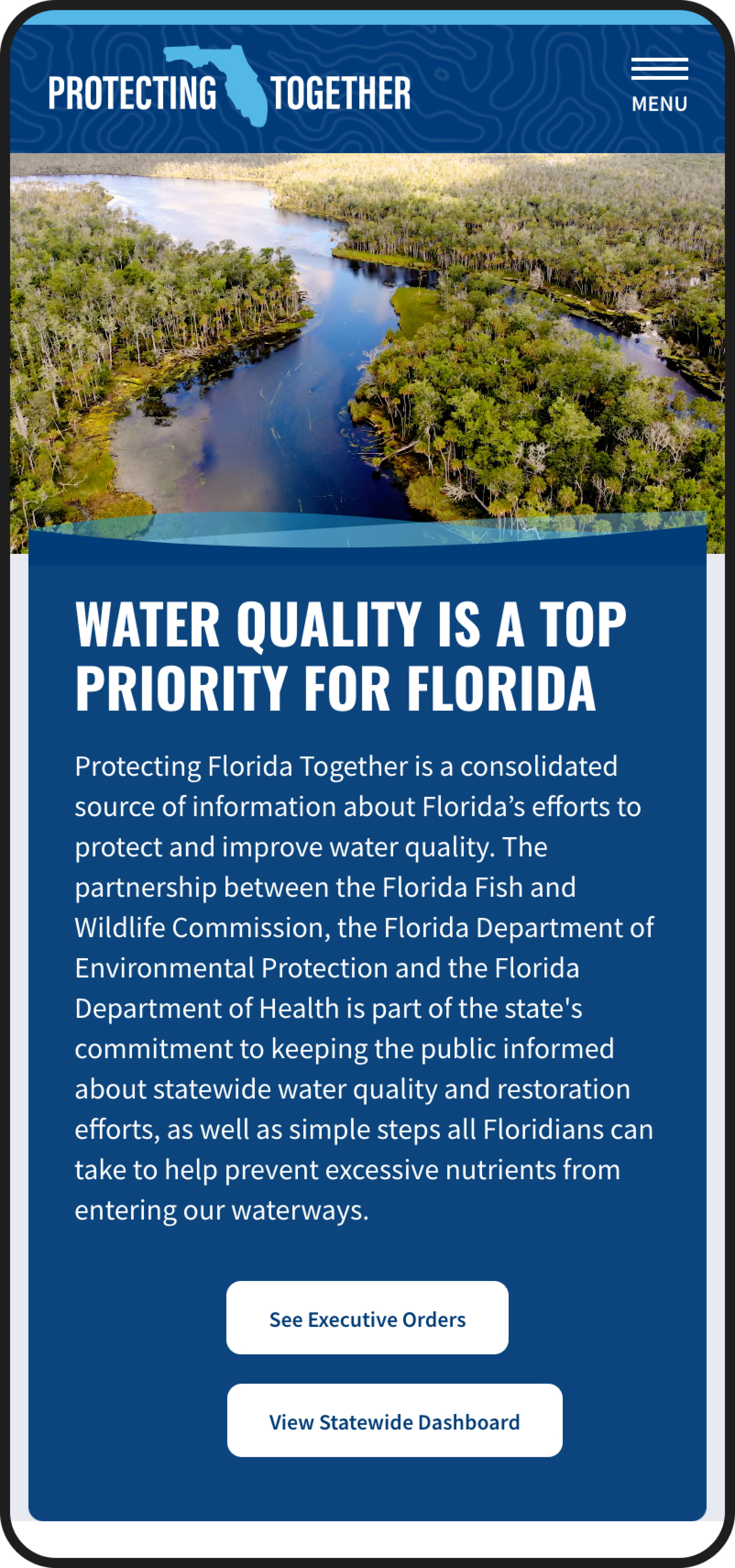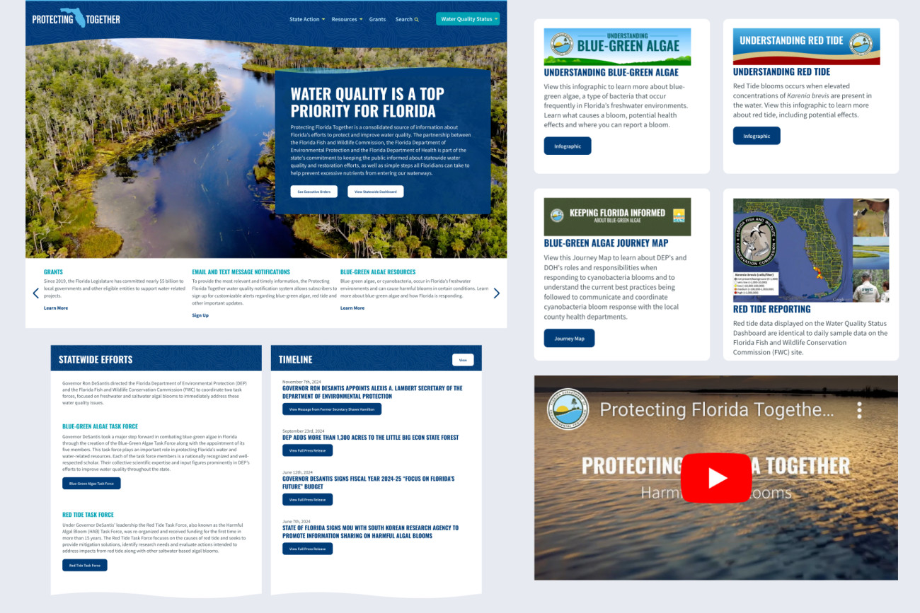 A winner in the 26th Annual Webby Awards for Government and Civil Innovation, this website was created for The Florida Department of Environmental Protection in partnership with The Moore Agency. Protecting Florida Together is the hub for a state-based effort for more accountability, transparency, and collaboration involving public data accessibility and education related to environmental issues in the state of Florida.