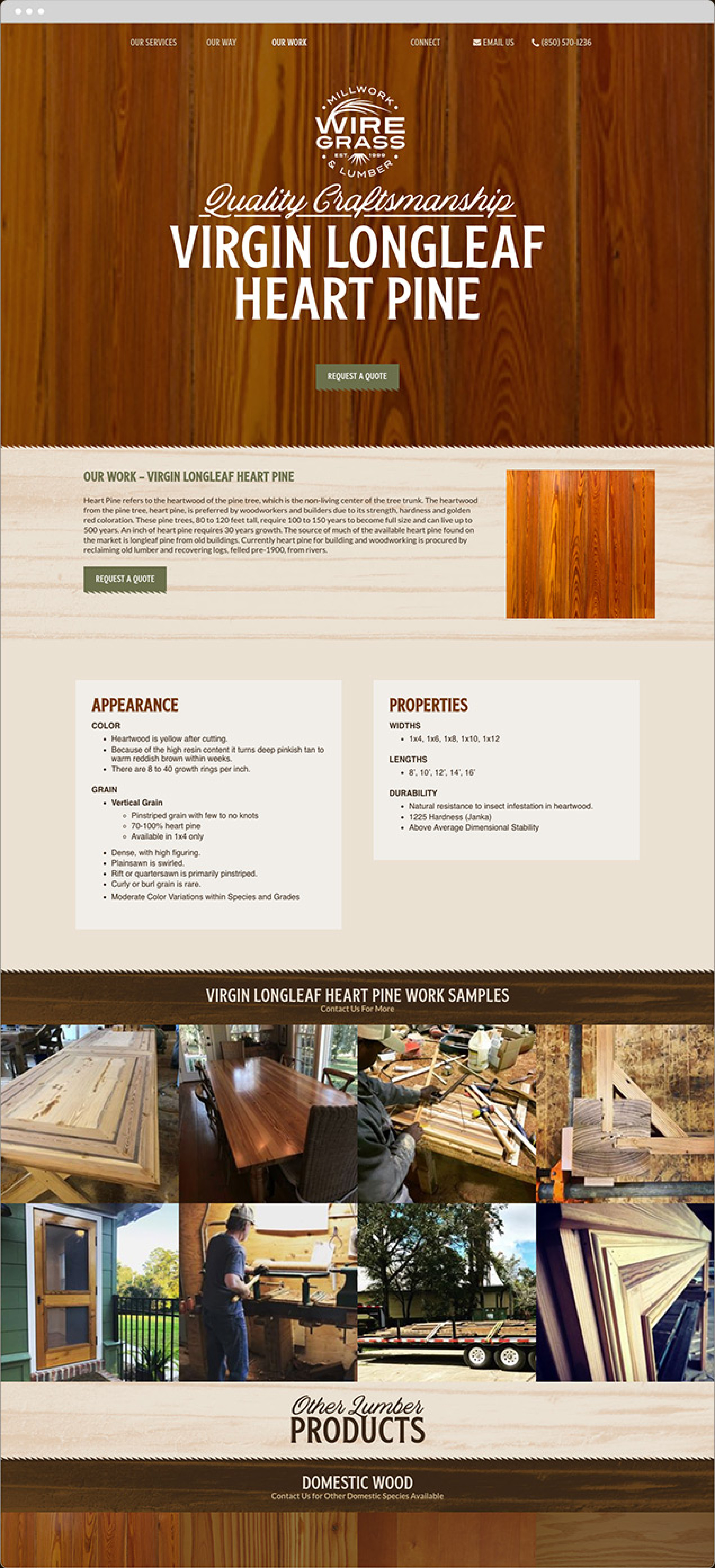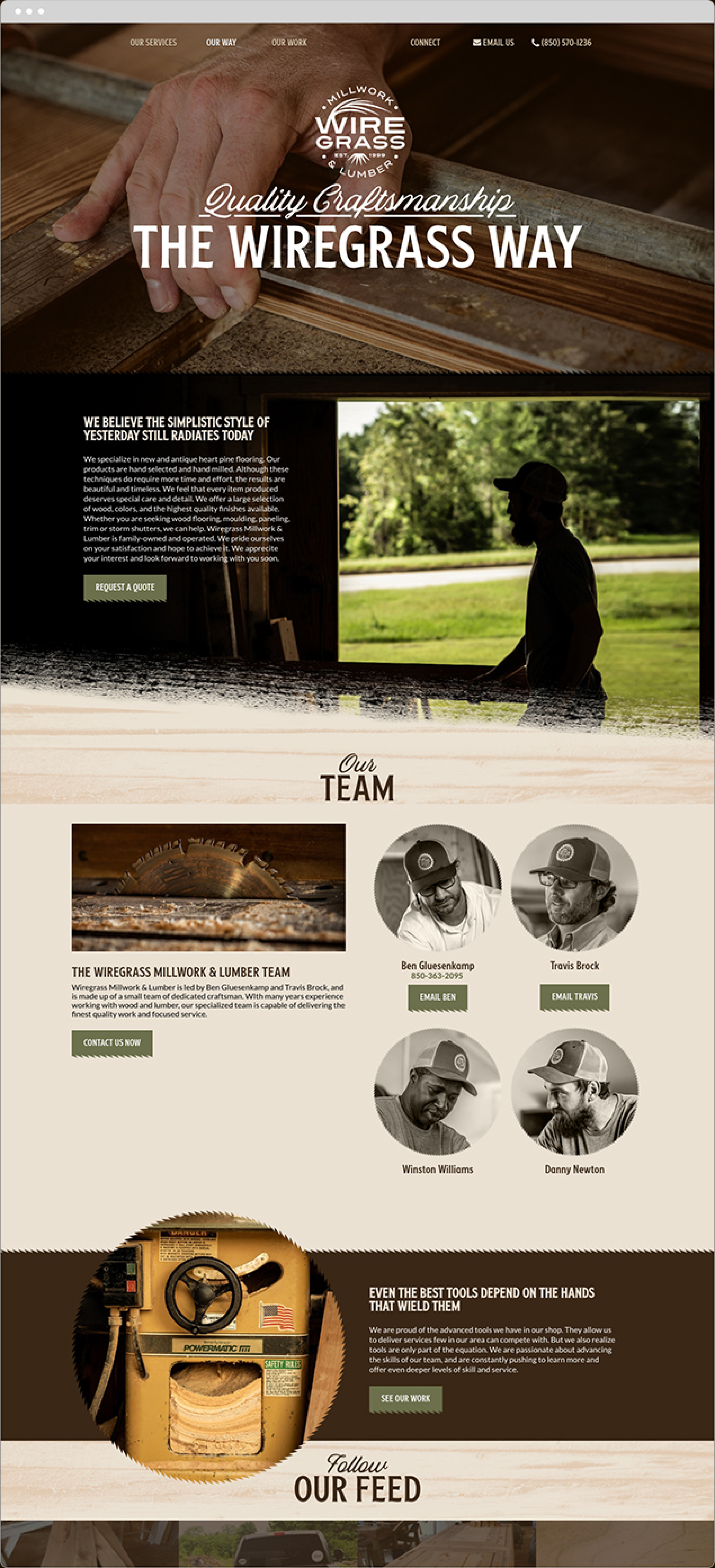 UnderStory designs a new identity and website for Wiregrass Millwork & Lumber.